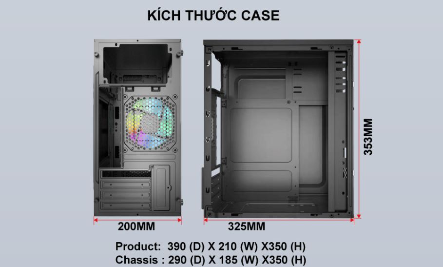 - Kích thước Case 305x170x350mm