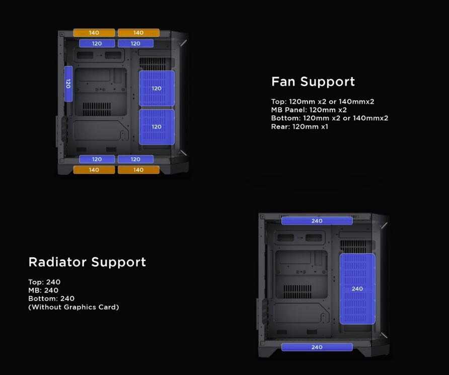 + Đáy : 240mm (Without Graphics Card)
