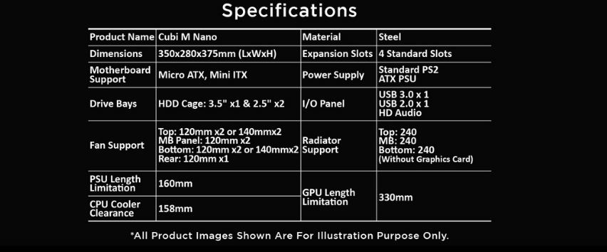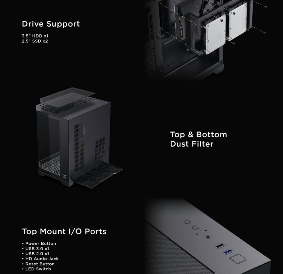 - Hỗ trợ Mainboard: Micro-ATX, ITX