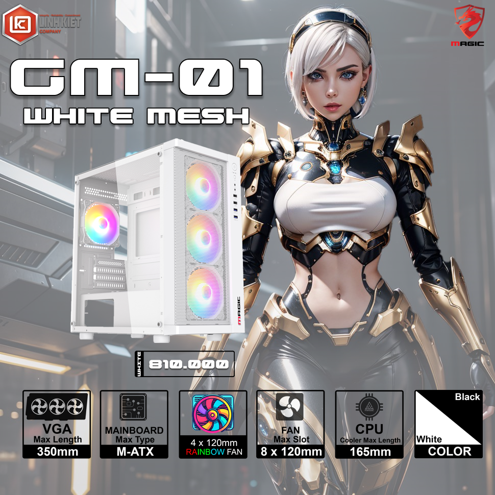 Vỏ Case MAGIC GM01 MESH WHITE (SẴN 4 FAN LED)