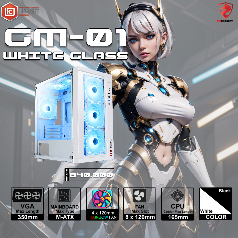 Vỏ Case MAGIC GM01 GLASS WHITE (SẴN 4 FAN LED)