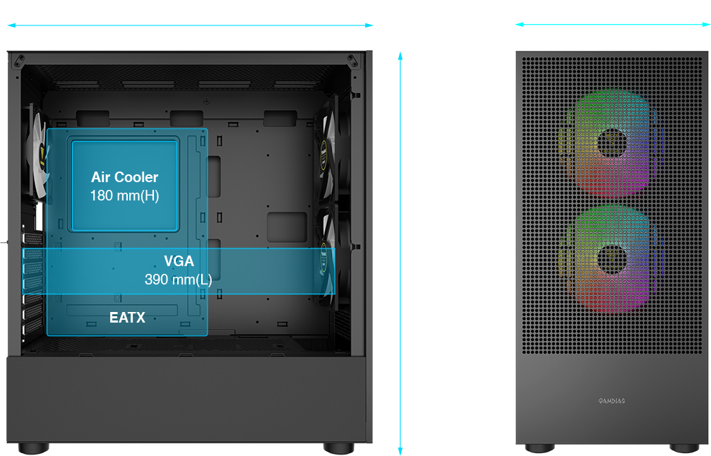 + Rear: 1 x 120mm ARGB Fan