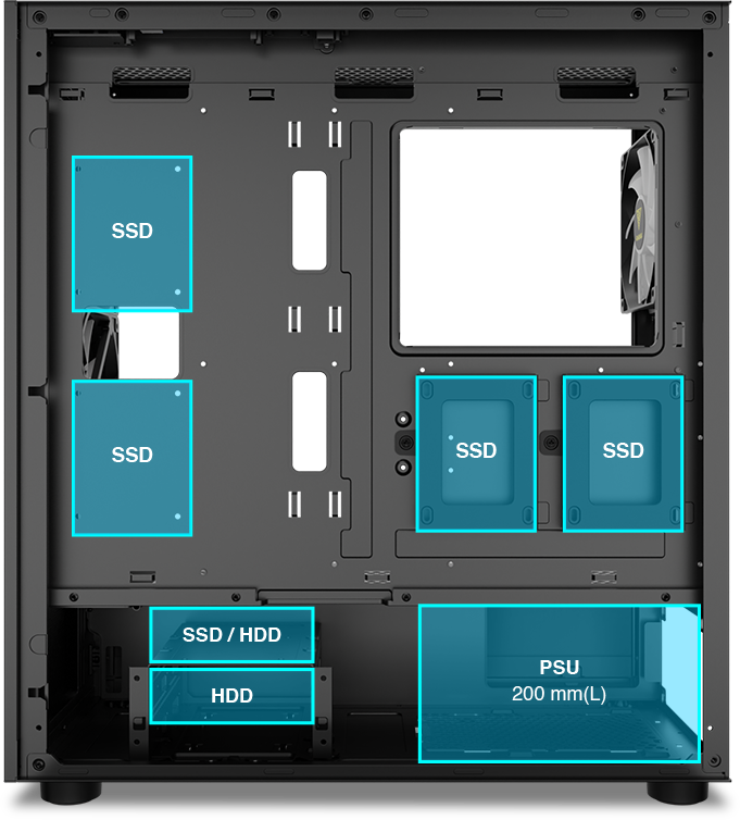 - Drive Bays 2 x 3.5" or 1 x 2.5" + 1 x 3.5" (HDD Cage) / 4 x 2.5"