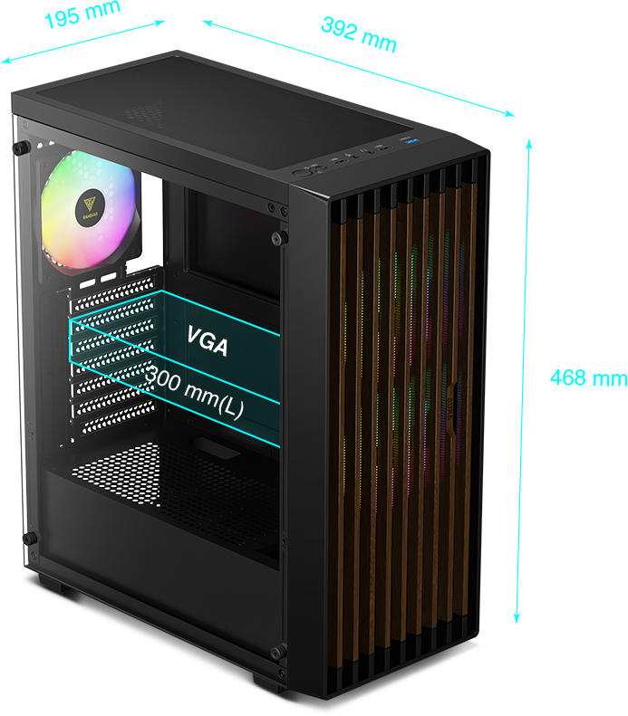 + Rear: 1 x 120mm ARGB Fan