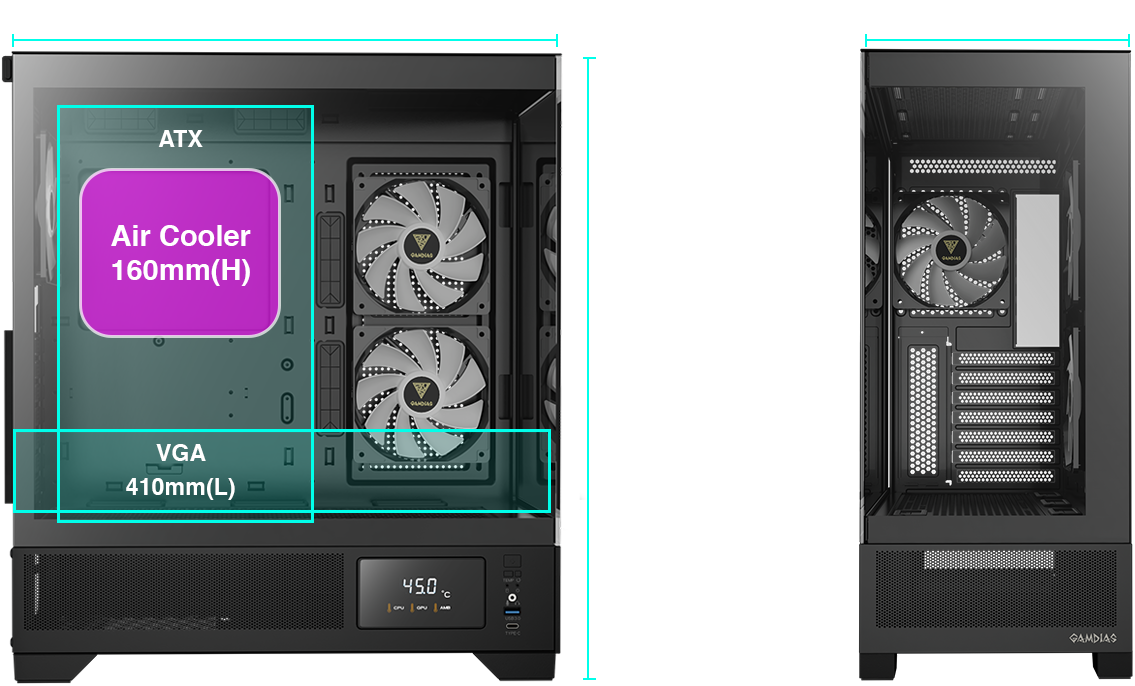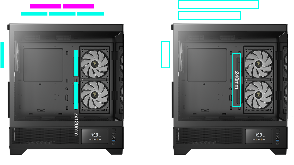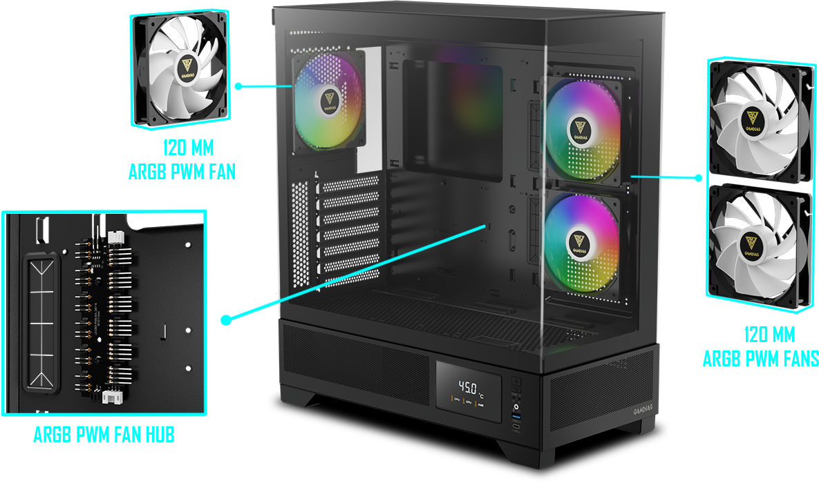 + Side: 2 x 120mm ARGB Fans