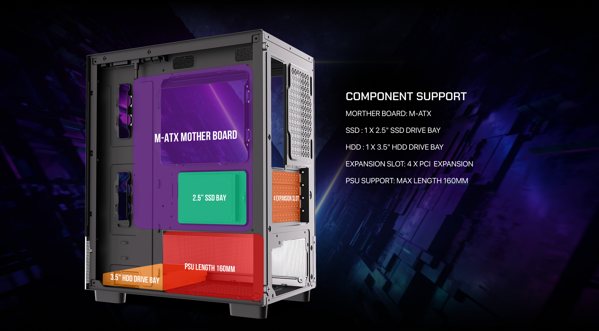 - Hỗ trợ main: ITX, M.ATX