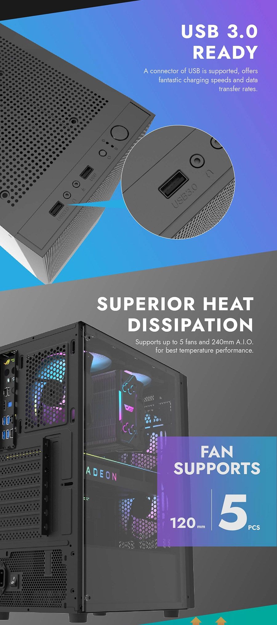 - Motherboard Support:ATX, M-ATX, ITX
